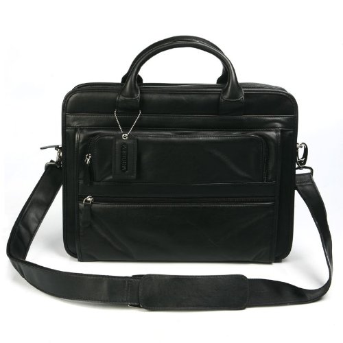 Lightweight expandable briefcase, crafted from smooth, durable full-grain cowhide leather, features two front exterior pockets, a rear zip pocket, and a rear stash pocket. It also has a computer compartment for most 14" laptop and two accessory pockets, plus a cell phone/iPhone pocket, a flap pocket, three pen loops and a interior zip pocket. The 51" removable, adjustable padded shoulder strap allows you to wear it over the shoulder or across the body. Top handles. Top zip closure. Fabric lining. Approx. 3.3 lbs.