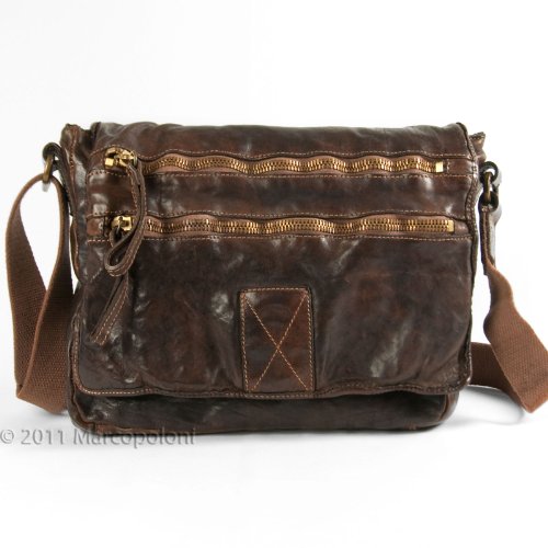 His bags undergo a unique manufacturing process, where each bag is washed and dyed in its entirety after all the parts are put together - straps, lining and all. This technique (patented by Marco's Campomaggi brand) not only gives Marco's bags their vintage, weathered look, but also makes each single piece really a one-of-a-kind work of art.