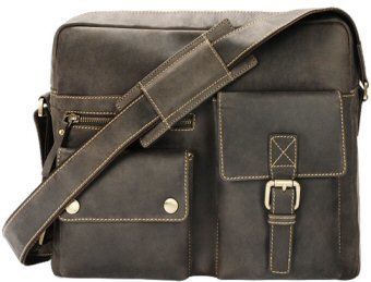 Distressed oil brown (mud) leather has that dark and sultry look about it. There's no doubt that this Visconti Messenger Bag has plenty of attitude. It is made from strong, quality hunter leather which is smooth to the touch and has a superb oiled finish.This is a big bag with good capacity and will comfortably accommodate A4 sized note books and files. There are plenty of compartments and pockets to organise contents. The long adjustable strap is made from leather topped hardwearing polyester and has a sliding rubber shoulder grip for comfort when carrying heavy loads. Although not specifically designed for laptops, this bag is strong enough to carry a small laptop or iPad. As no padding is provided, we recommend you use a protective skin/cover .