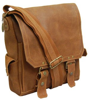 - Letter size messenger bag in distressed leather